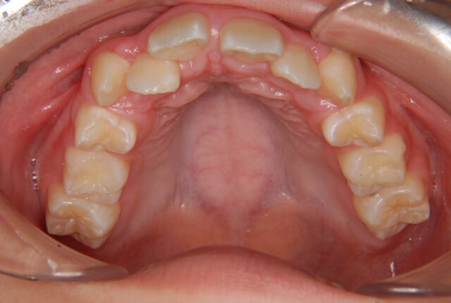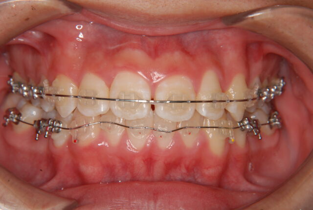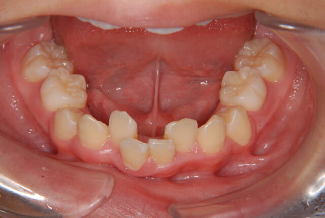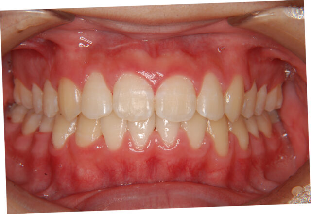唇側矯正 小児矯正 ガタガタした歯ならびの治療例2【非抜歯】 この治療例は抜歯せずに、歯を少しだけ削って、矯正治療を行ない上下歯列のガタガタを改善した写真です。 治療前 治療中 治療後 主訴 ガタガタを治したい 診断名あるいは主な症状 叢生 年齢 12才 治療に用いた主な装置 唇側矯正装置 抜歯部位 非抜歯 治療期間 約2年 治療費概算 880,000円(税込) リスクと副作用 ガタガタがある場合、歯を抜かずに治療すると口元の前突はあまり改善しない。ガタガタがの程度が大きい場合は口元が前突する可能性がある。無理な歯列の拡大をすると唇側の歯茎の退縮を起こす。